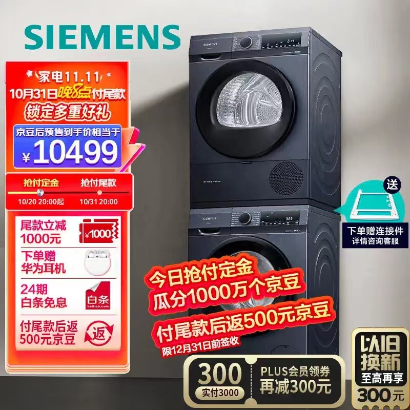西门子(SIEMENS) 湖蕴蓝洗烘套装 10kg