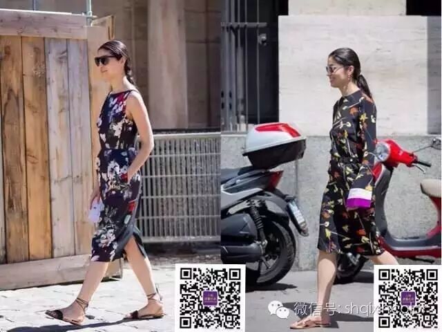 👆图一仔细看,穿小碎花的图案有些土气,图二穿素色连衣裙则有气质很多