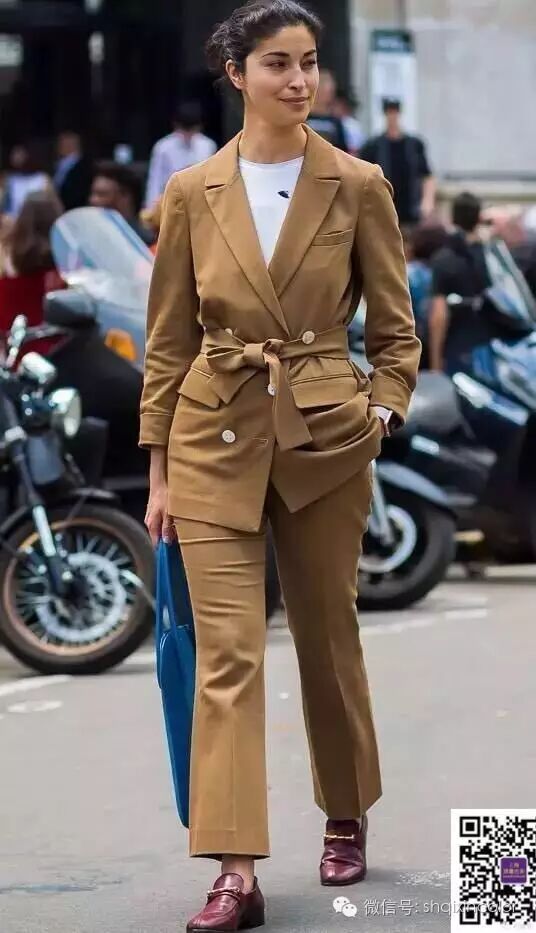 👆同样的西裤套装,同是营造洒脱一面,图一松软的质地,不如图二硬挺精致面料穿得显精神!