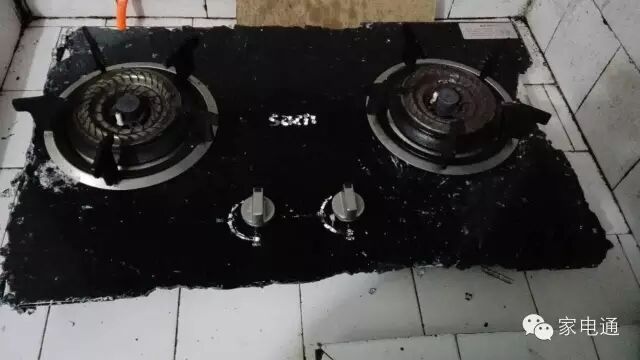 通过图片我们可以看到整个灶具的面板周边全部炸裂,可以想象到当时的恐怖场面!
