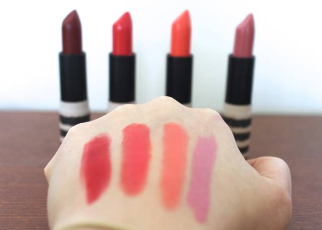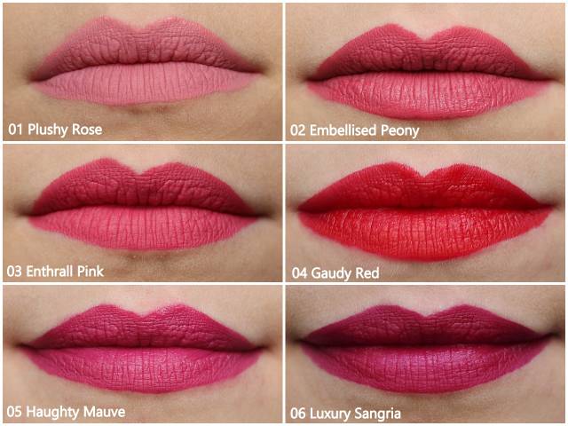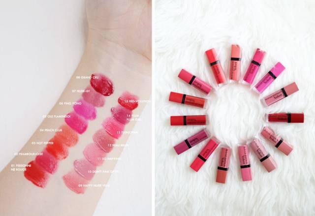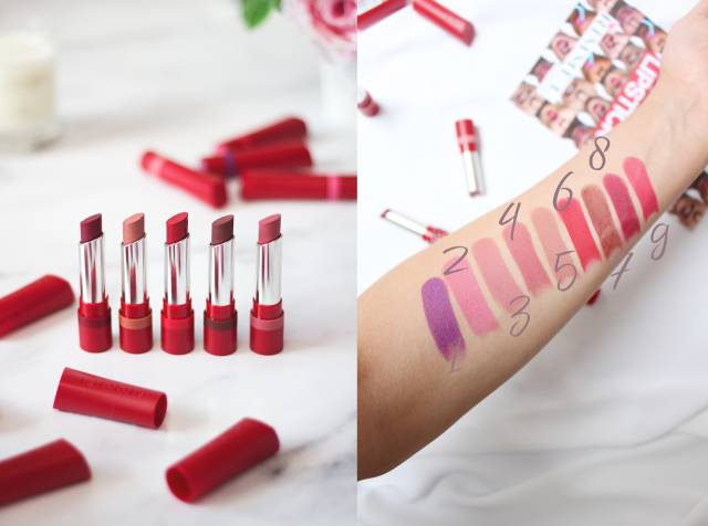 遮盖力强,适合唇色深的姑娘,色号很正,是YSL、MAC的口碑替代。上一张国外博主的不完全试色图: