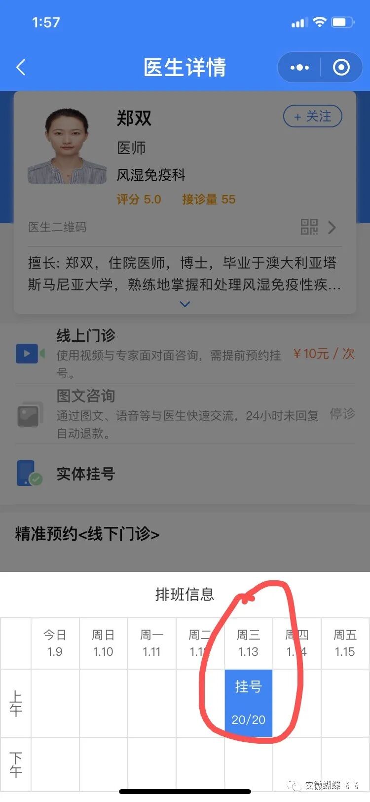 6 找到方便门诊视频问诊医生,并预约门诊时间。(如果着急可以选择当天的医生)