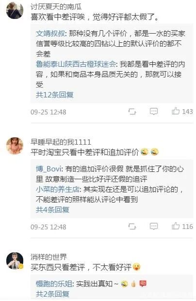 不少网友表示中差评是重要的购物参考。微博评论截图