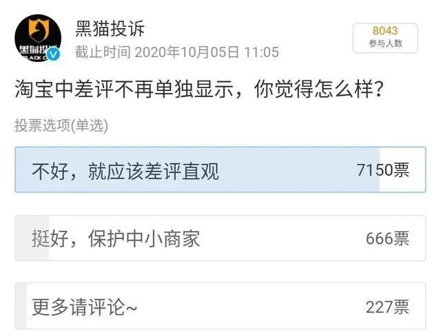 但在消费者看来,这提高了购物的选择成本。在黑猫投诉发起的淘宝中差评不再单独显示,你觉得怎么样?的投票中:高达90%的网友都认为不好,就应该差评直观。