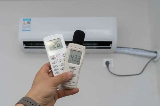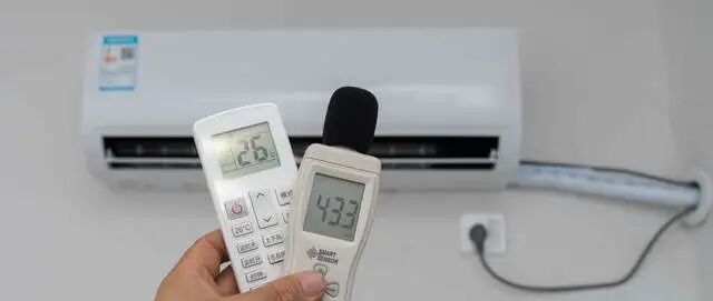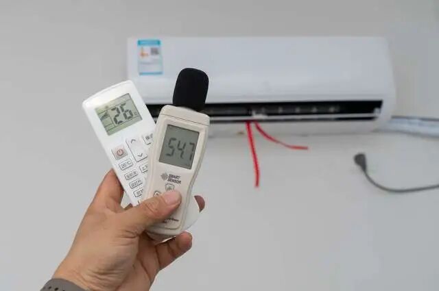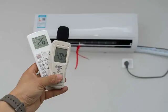 接着测试一下噪音,噪音太大会影响拍视频时的收音效果。室内的静态噪音为35db,打开空调,使用低风速,在距离空调出风口80公分远的地方测试,仪表显示噪音为43.3db,距离1.5米噪音为41db。尝试了一下,在低风状态下,并不会影响录视频时的收音效果。