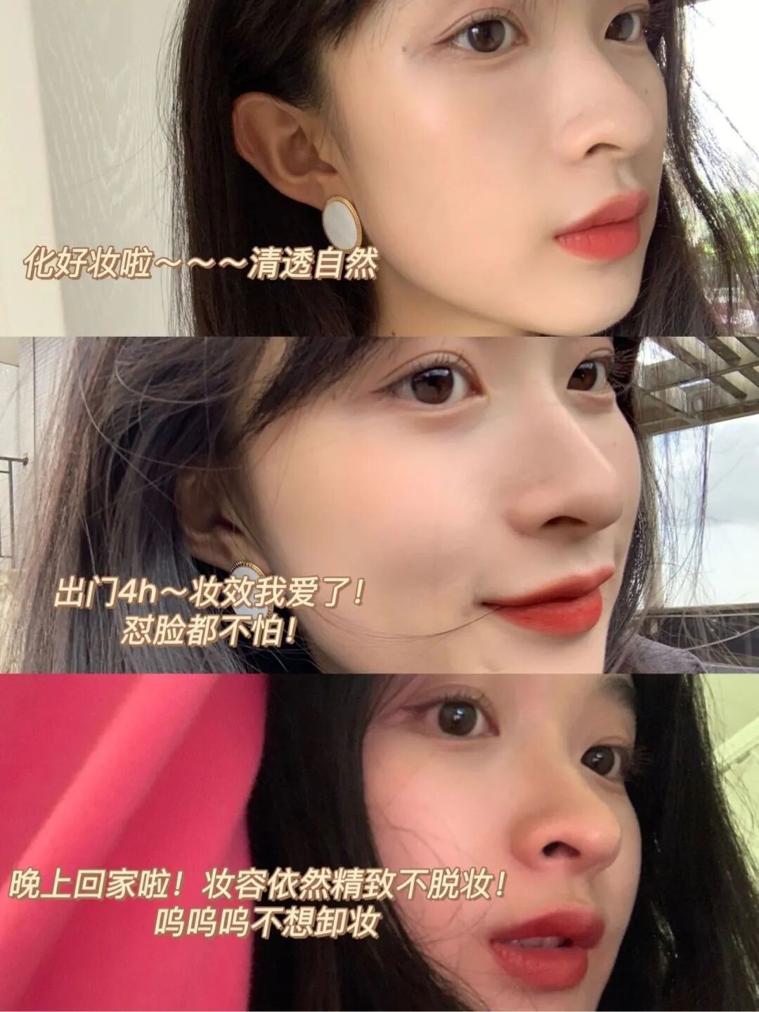 质地涂起来还蛮顺滑的,不怎么挑唇部状态,成膜之后是半哑光的感觉,后续也不会拔干!