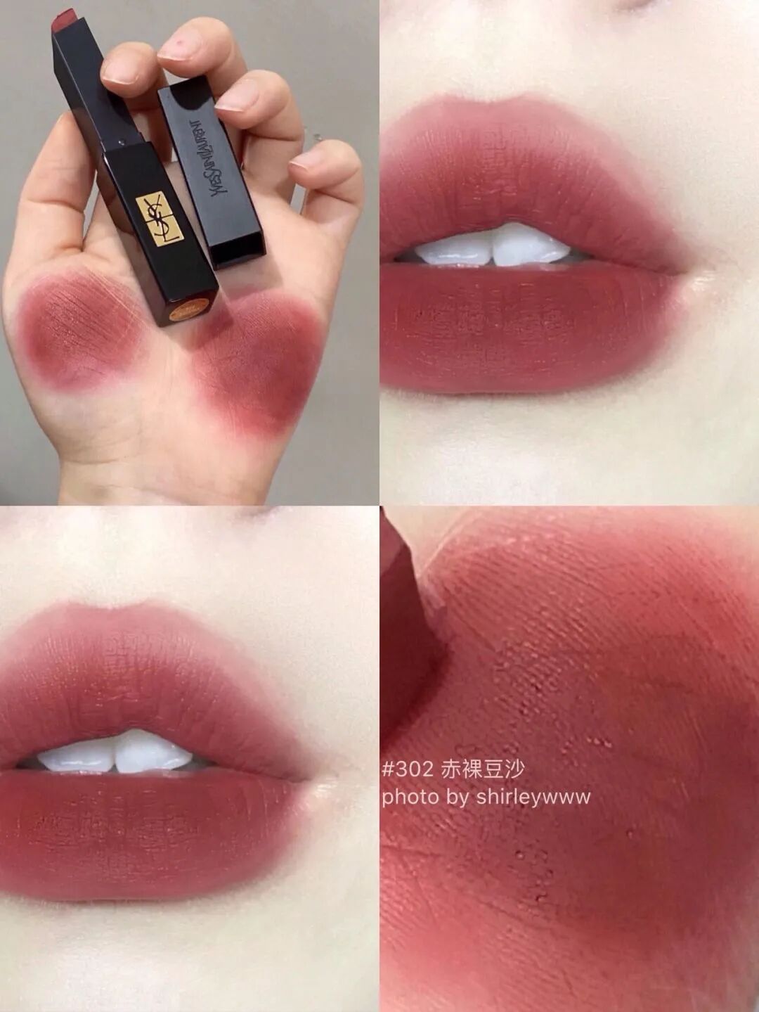 另一个很多人pick的春夏本命色就是302赤裸豆沙啦!带了一丢丢红调的偏暖豆沙色,提气色一绝!