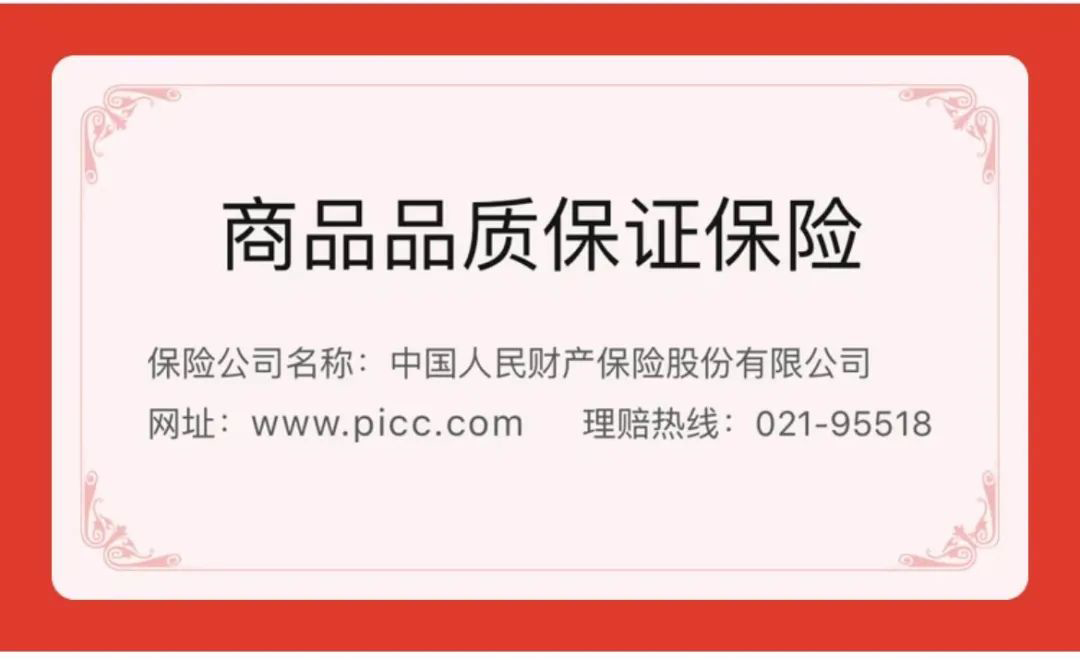 还和人保联手推出了【品质保证险】,假一赔十!大家可以放心大胆的买!