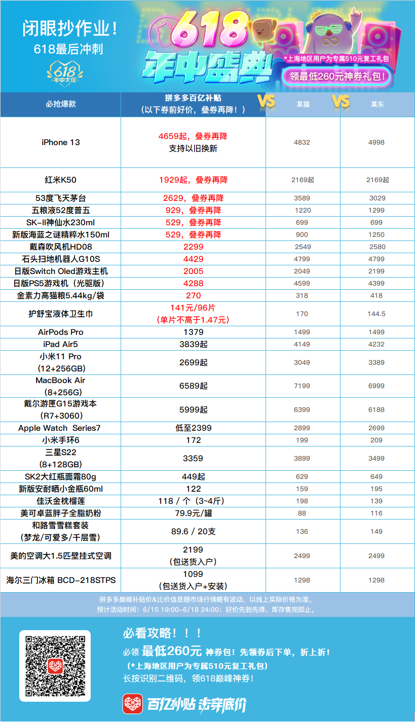 而且拼多多百亿补贴这次618尊滴好狠,特别准备了【最低260元】的限时大额券包!(上海地区用户为专属510元复工礼包),这样领券折算下来,价格等于是低谷再打骨折