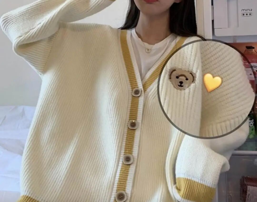 小熊刺绣大开衫