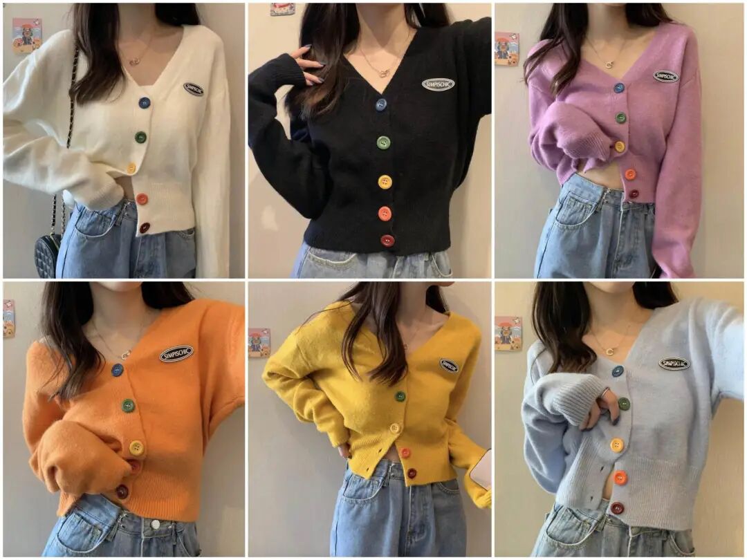 彩色扣子小开衫