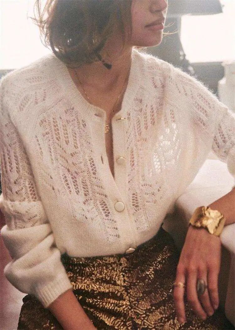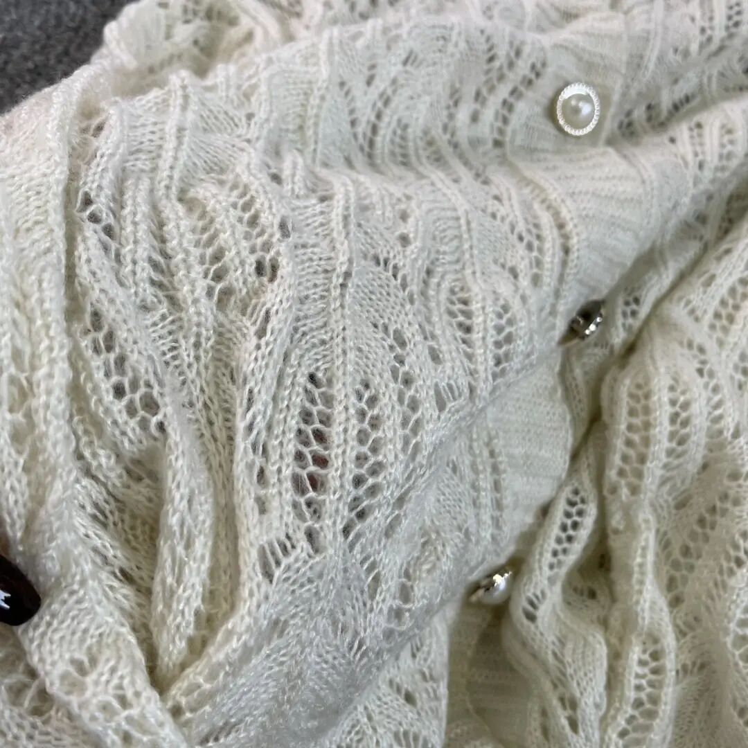镂空珍珠扣小开衫