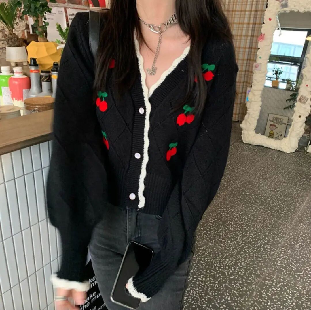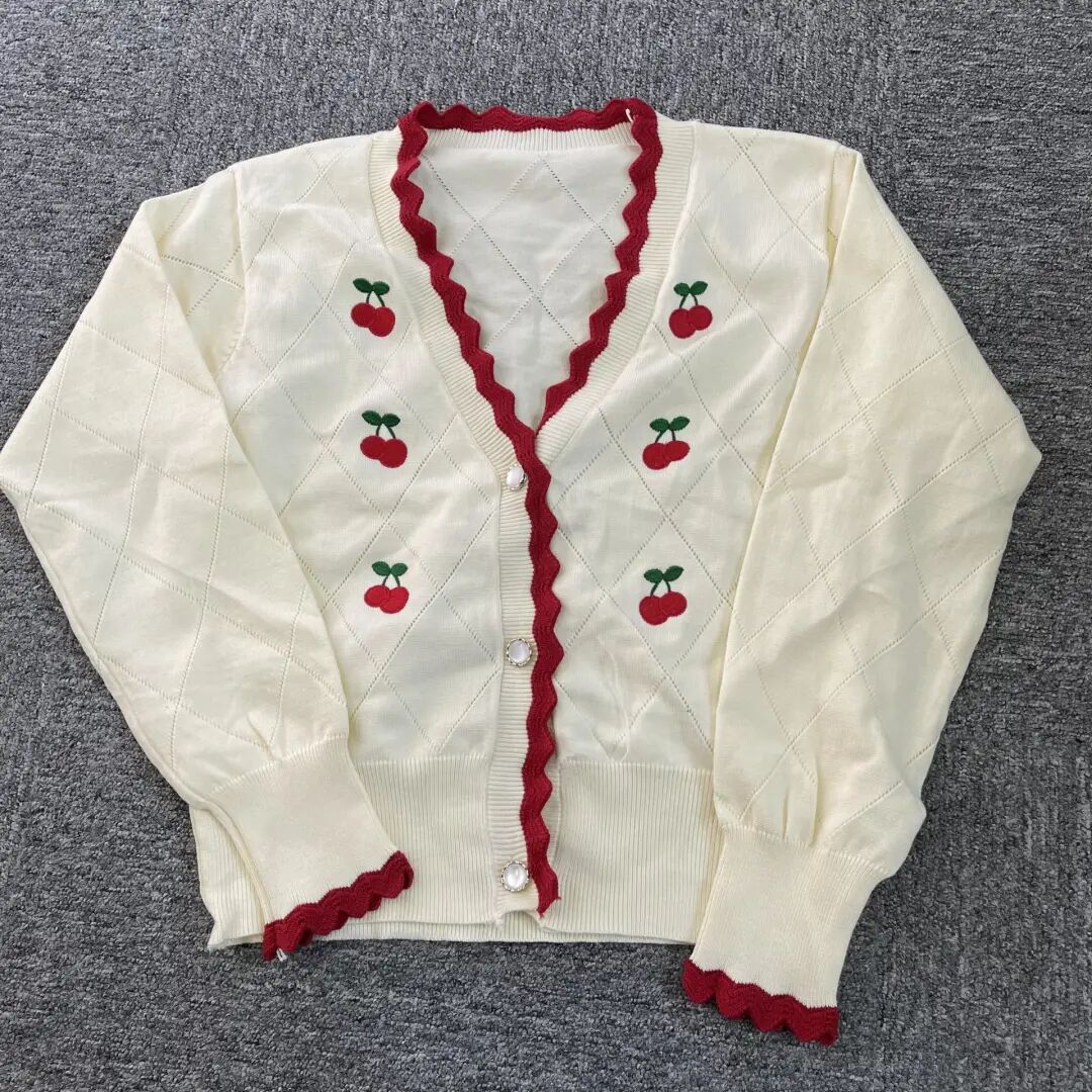 小樱桃刺绣开衫