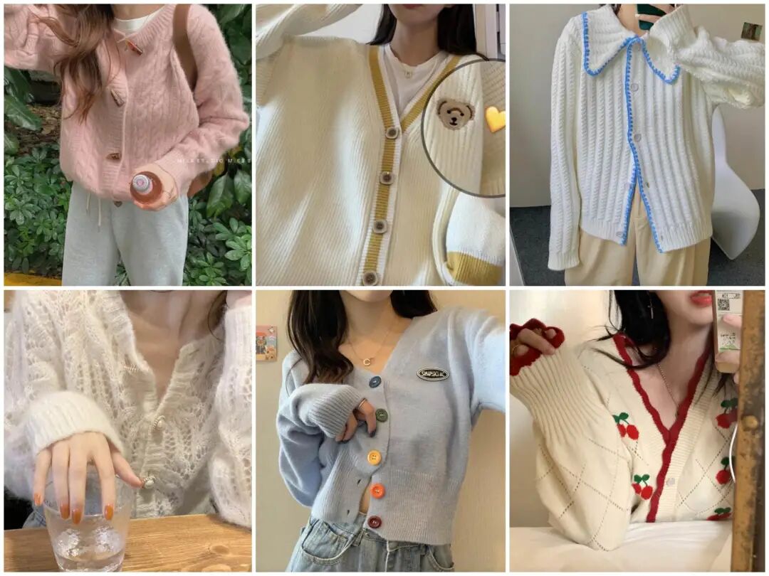 基本都算是偏薄一些的针织衫吧,很适合春天穿的那种。