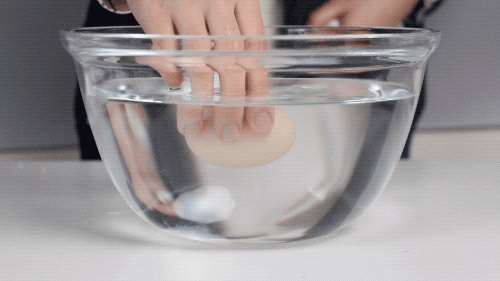 将鸡蛋放入大碗水中,如果和拼多多鸡蛋一样,老老实实地在碗底呆着,就说明鸡蛋很新鲜。如果倾斜或浮起来就不新鲜咯~