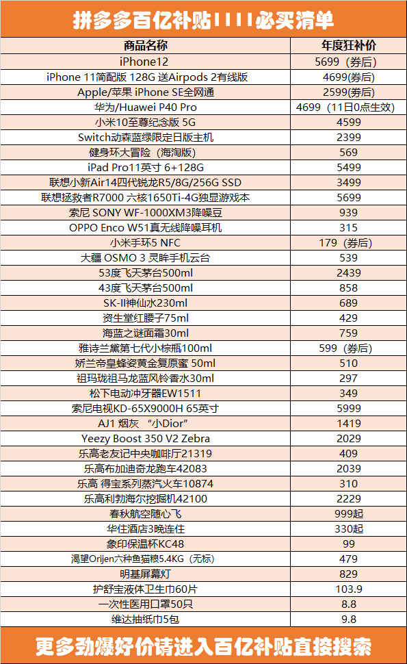 11月10日-11月11日,百亿补贴迎来年度最高补贴力度,错过这次可能就要明年见了!废话不多说,就让我们来看看现在有什么产品值得买吧?