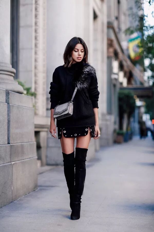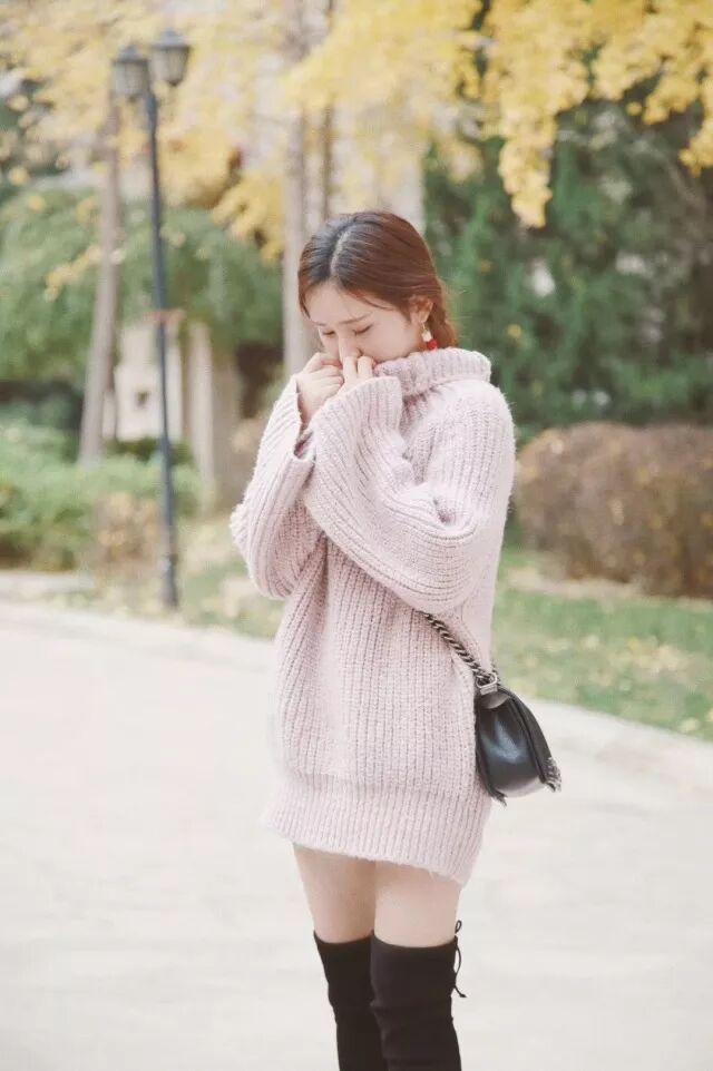 首先秋冬打底裤+短裙是绝对没问题滴,显瘦保暖,套上一件厚的羊羔毛外套或者毛线外套就可直接出门了。
