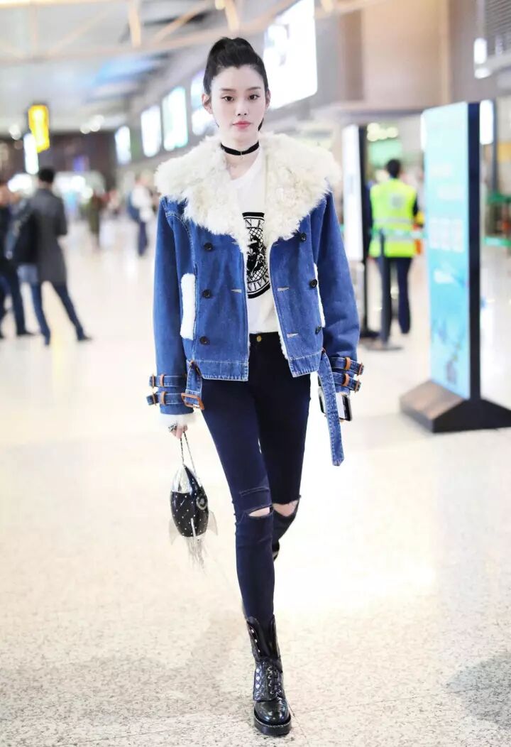 维密天使奚梦瑶,日前现身机场时就穿破洞裤配马丁靴,大秀完美长腿。