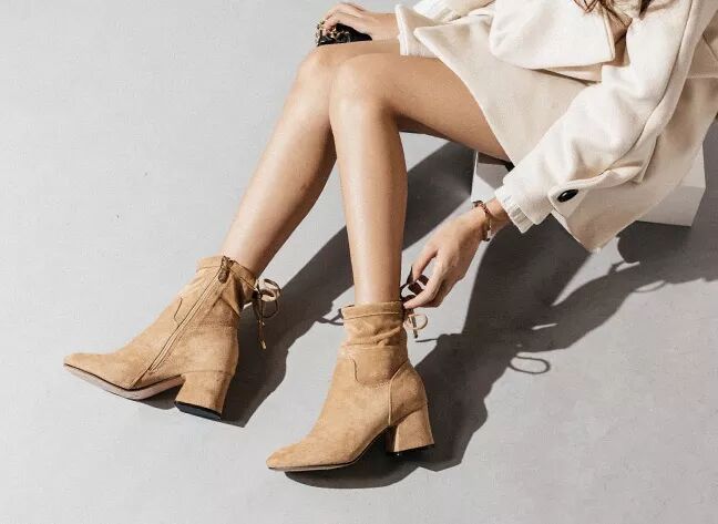 靴口一定要紧,宽松靴口的短靴,搭配九分裤容易显得特别拖沓,一定要远离!鞋口收紧、并且高度略超过脚踝的款式,最显瘦显高啦,衬托的脚踝越加纤细。