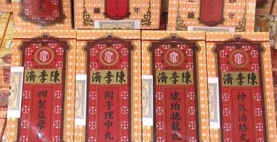 另外一种为红色花纹外包装的香港陈李济宁神养心丸。