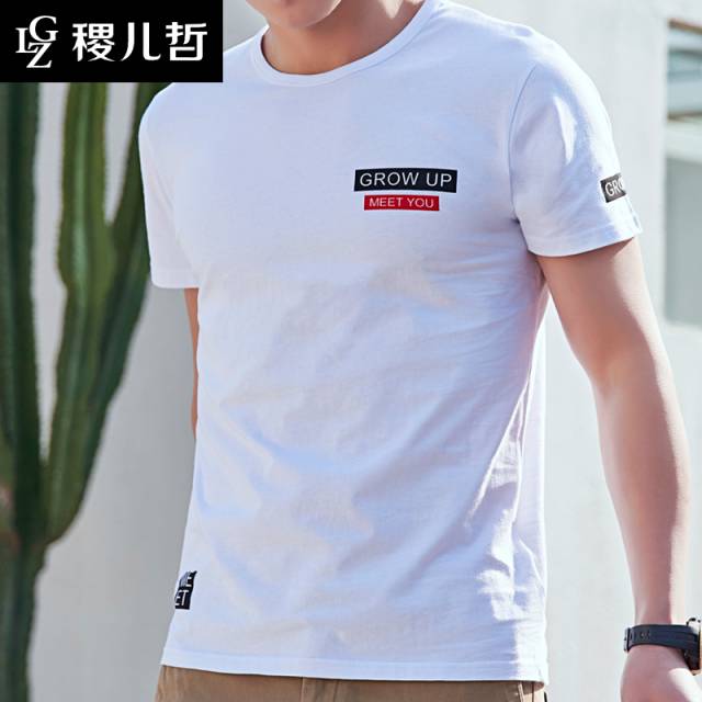 稷儿哲T恤男短袖青少年短袖圆领韩版修身男打底衫纯棉半袖潮男T恤