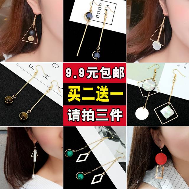 韩国耳环无耳洞耳夹女几何耳钉长款流苏气质耳坠个性夸张吊坠耳饰