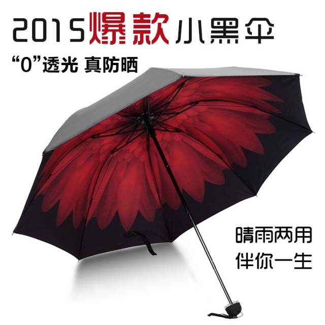 超轻黑胶太阳伞小黑伞女防晒防紫外线遮阳伞晴雨伞折叠情侣三折伞
