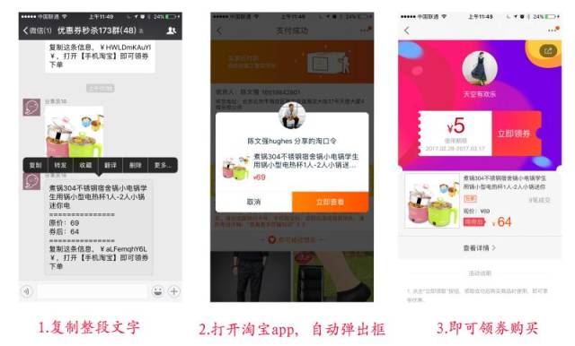 第三步:复制整段文字链接后,打开手机淘宝即可领券。