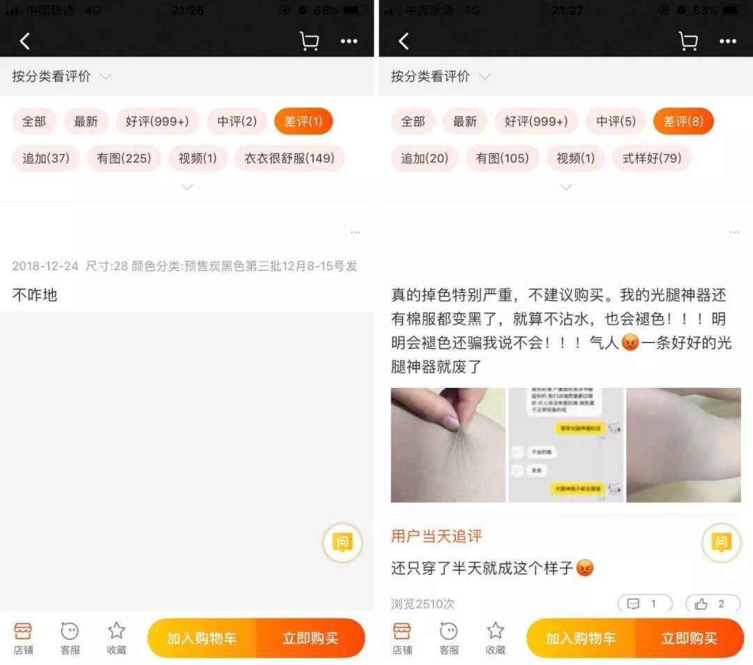 带着脑子试图分析一下差评的理由 ,到底是「物流太慢」「客服态度不好」「穿了两天扣子就掉了」还是「起球严重」「掉色严重」,看一下ta差评的理由跟你的需求冲不冲突。