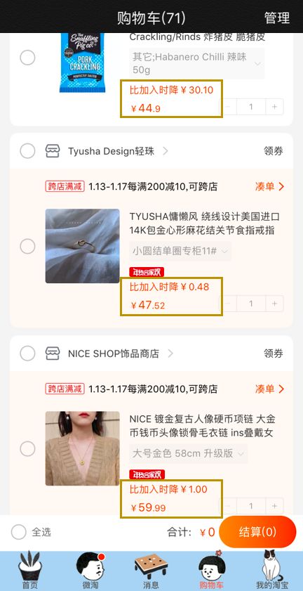 而且我经常发现加入购物车的单品,过段时间就会出现降!价!信!息!👇