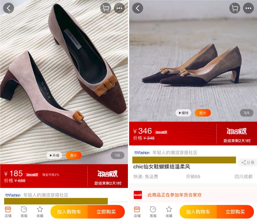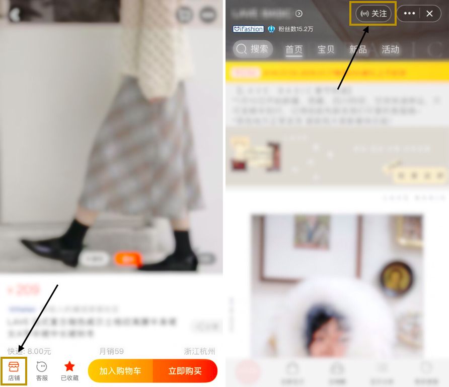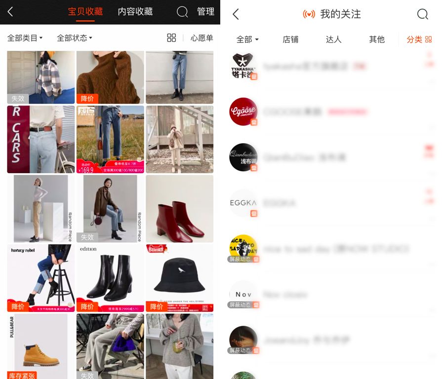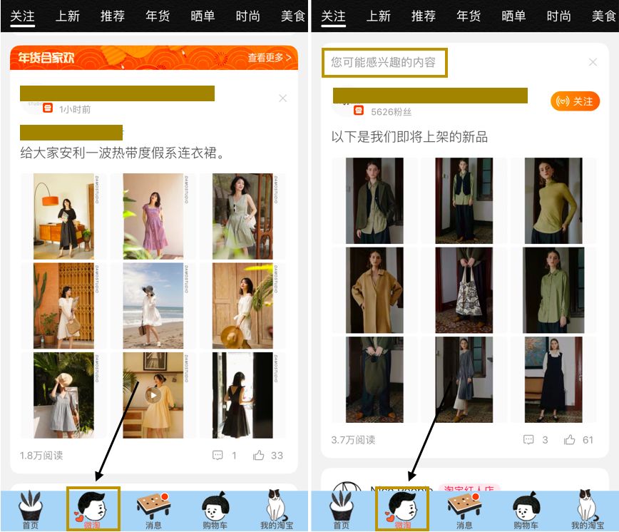 (下图左)你关注的店铺的动态——不管是上新,还是发了好看的买家秀