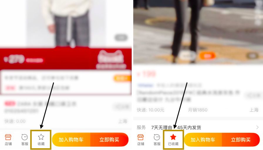 随手收藏单品,随手关注店铺,做好储备,想买衣服优先选自己收藏夹里的