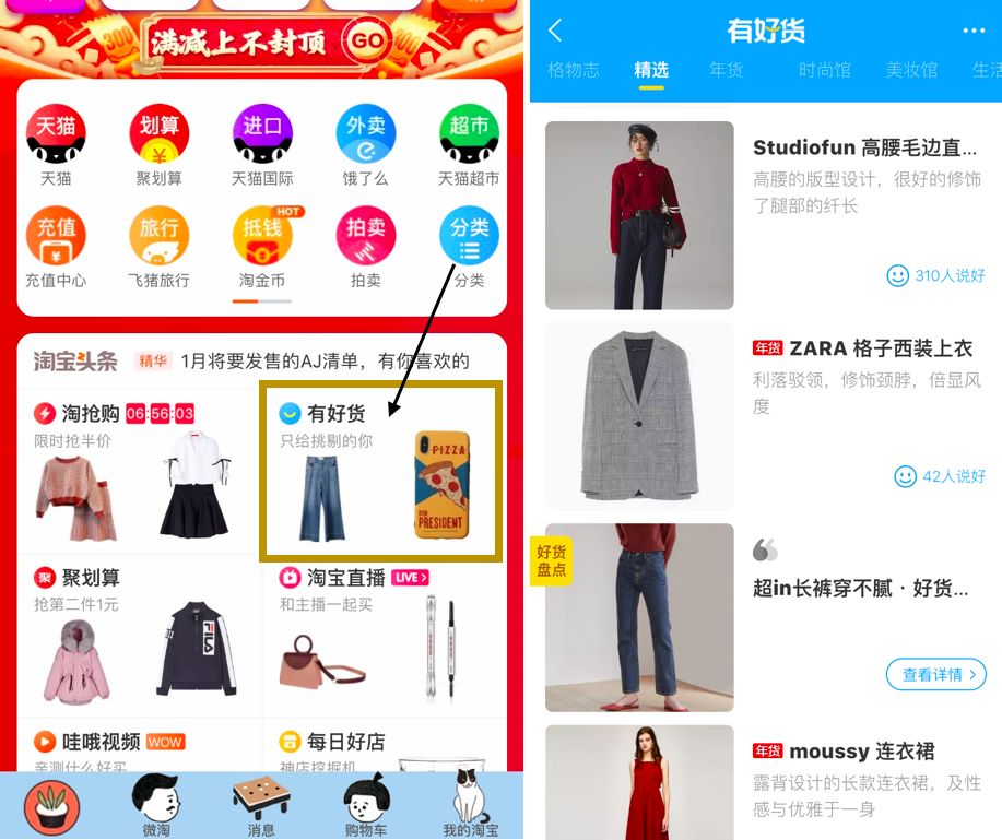 淘宝首页的「有好货」栏目,比首页搜索关键词啥的可强多了👇