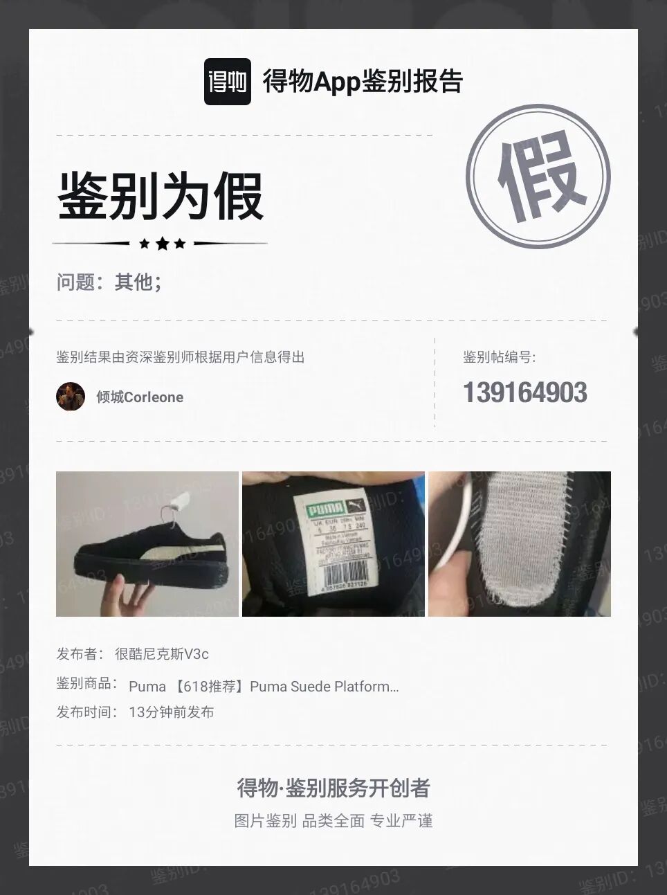 鞋子到手后,真是一眼假系列,因为我之前有一双粉色的,所以这双黑色假的可怜,随后到得物花5元大洋鉴定依旧为假。