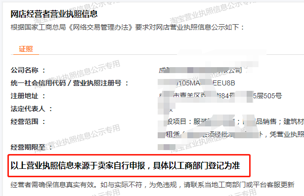 商家显示的店铺执照,不一定是他在工商局录入的真实执照。你点进去也会看到最后一行显示的,这个是商家自行上传的而不一定是商家在工商真实录入的执照。