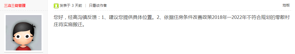 三治三促管理:您好,经高沟镇反馈:1、建议您提供具体位置。2、依据住房条件改善政策2018年—2022年不符合规划的零散村庄将实施搬迁。