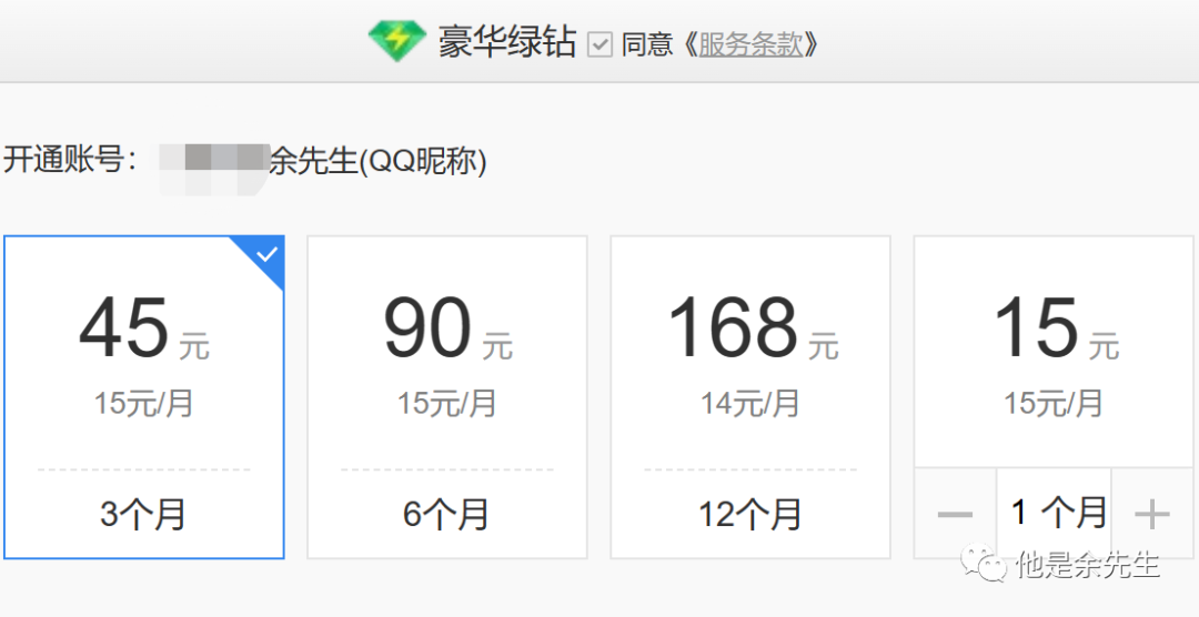 先看看官网会员价:1个月=15;3个月=45;6个月=90;12个月=168