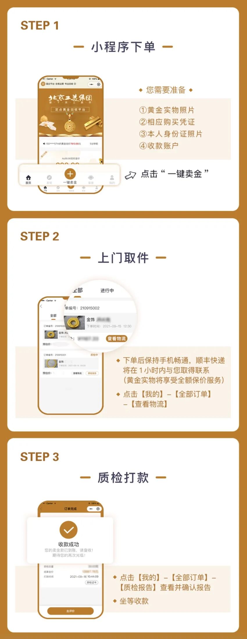 具体卖金流程请详见下图: