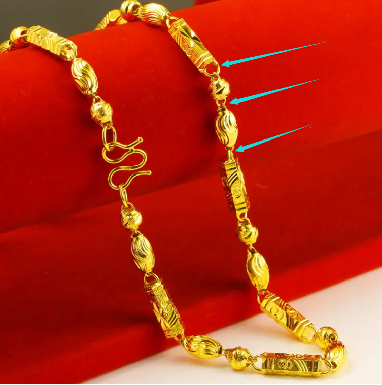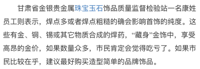 如果是焊点多的款式,比如复杂款的男士项链,追求完美的朋友建议在大品牌选购,因为黄金软,焊点部分一般都会用K金去焊接,所以含金量肯定是不足的,买之前提前问好销售,省的后期有纠纷,问明白了不吃亏又省钱。