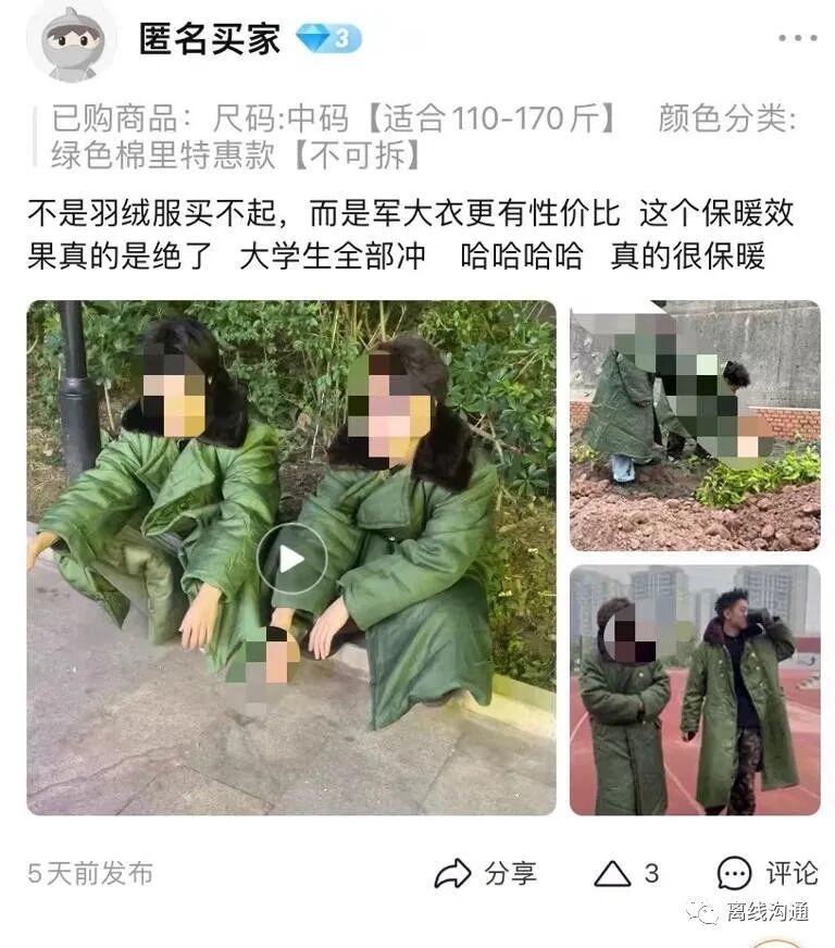 “不是羽绒服买不起,而是军大衣更有性价比”!军大衣爆火,小码卖断货,心理学家:年轻人的回应!
