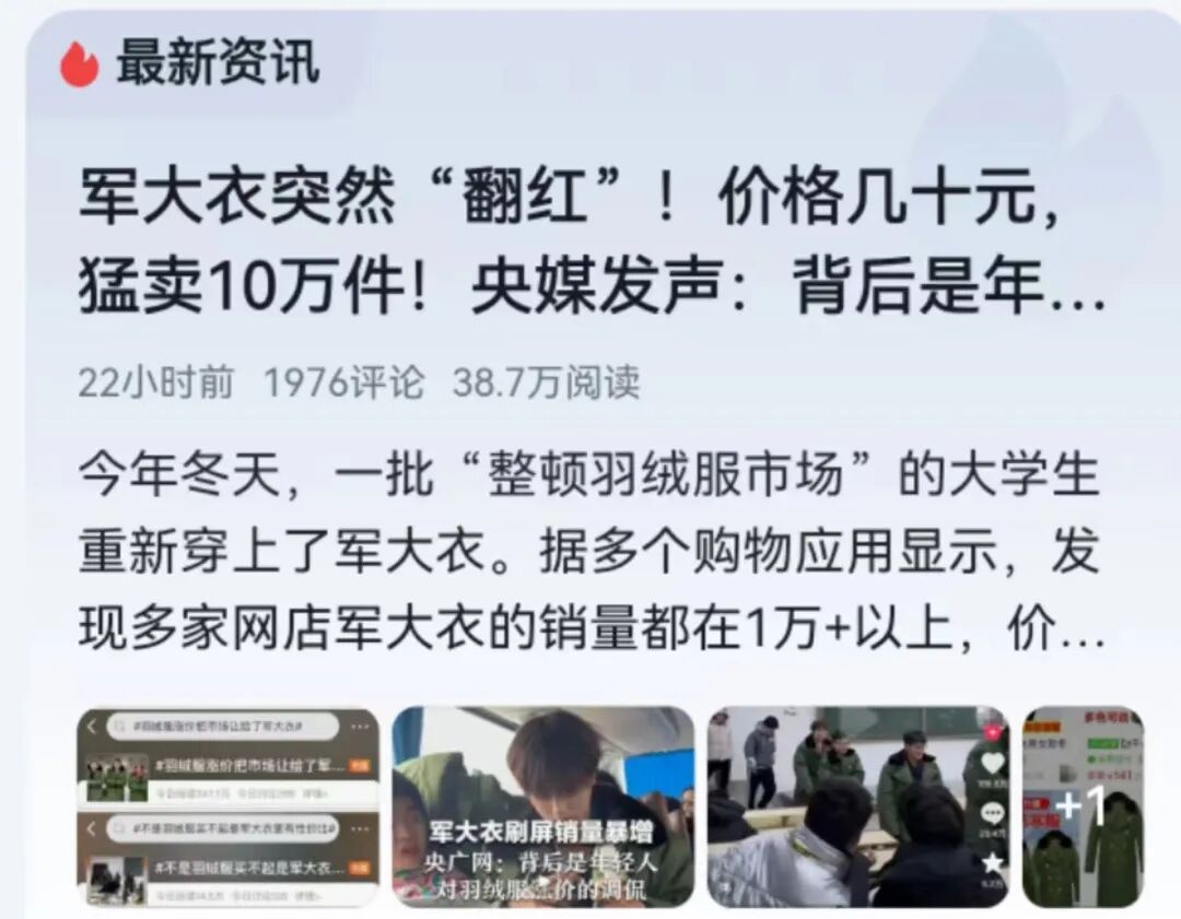 网络瞬间兴起了一句流行语:不是羽绒服买不起,而是军大衣更具有性价比。羽绒服虽然保暖性能好,但军大衣在价格方面更具优势。因此,对于一些消费者来说,购买军大衣可能是一个更实惠的选择。