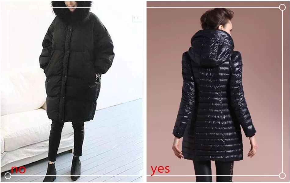 很多人会问?为什么呢?原因很简单,因为羽绒服因为材质的关系它不同于一些风衣外套,尤其是像一些宽松茧型的羽绒服看上去就像个椭圆形似的,衣服的廓形大就算了,关键是它衣身的下摆还很长,除非你有一米75以上的身高可以选择这样的长度,不然不管什么样的身材穿上去,都会显得很臃肿很笨重的感觉,反观以上右图就不会,刚好的长度,衣服是修身的版型同时也修饰了身材线条,这样的视觉感看起来显得时髦舒适多了,显高显瘦还很保暖呢。