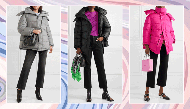 Balenciaga的羽绒服经常是比较宽大的设计,版型是比较外扩的感觉,有点chunky风,就会显得腿部比较利落。