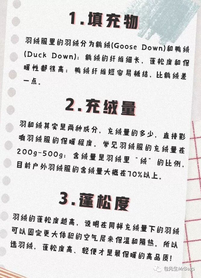 羽绒服其实不便宜,要想不花冤枉钱买到一件高质量的羽绒服,那下面三个标准就一定要了解一下: