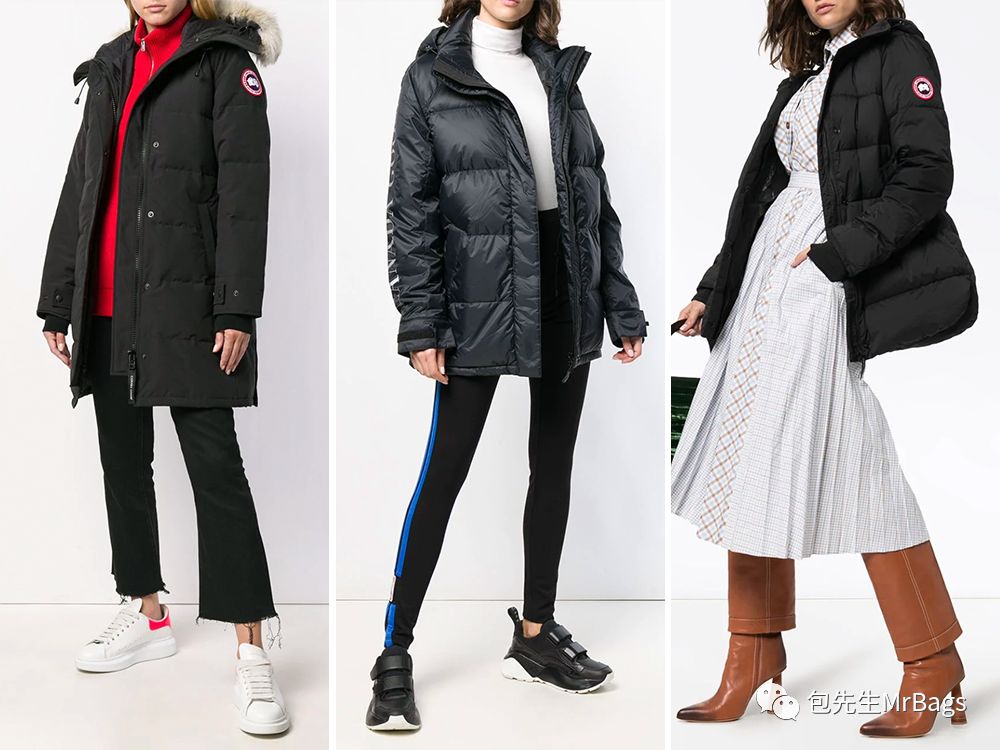 它们分别代表了大鹅最经典的派克大衣风格、廓形和收腰外套三种造型。