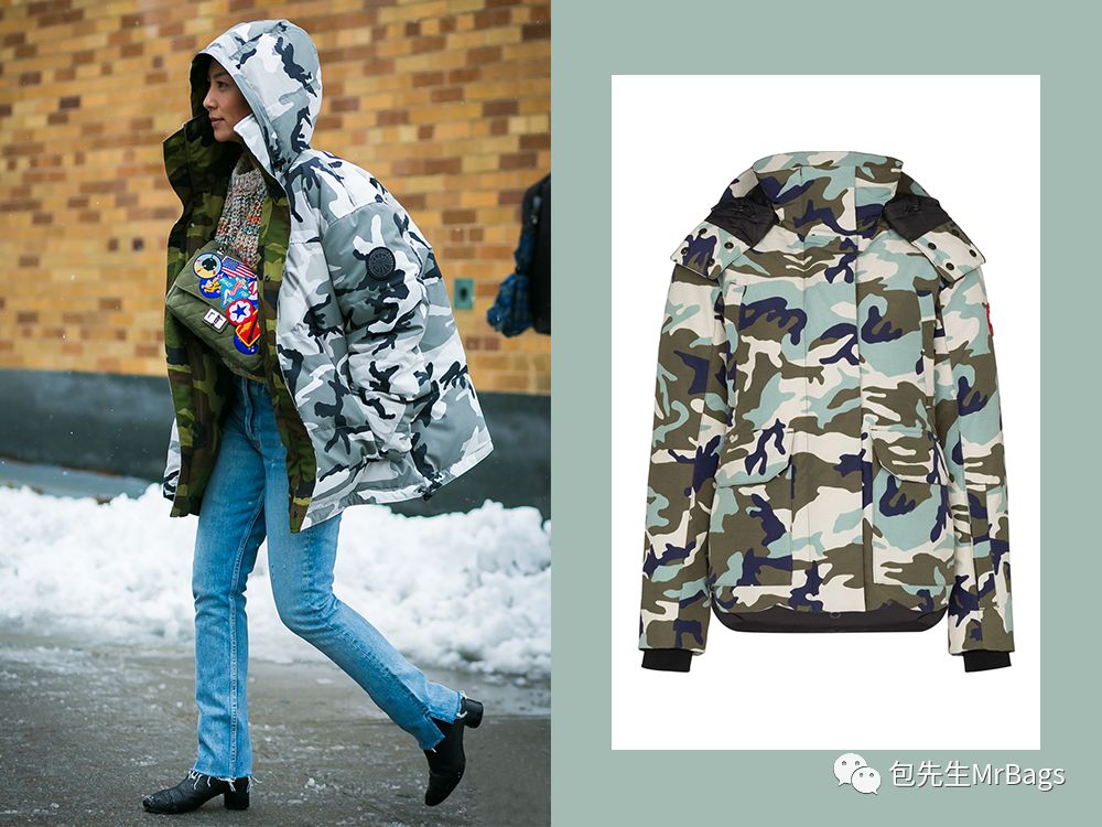 大鹅之前和Vetements的合作款就是迷彩配色,其实Canada Goose的经典系列里也有迷彩款式,价格比合作款更合适。
