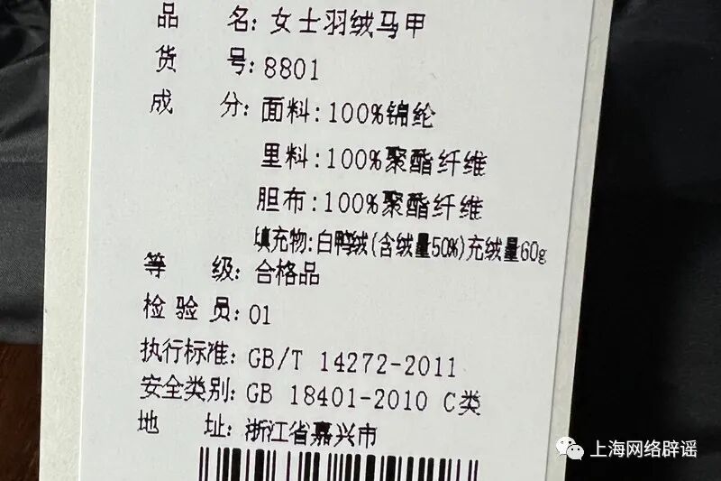 不过,对于生产日期在2022年4月1日之后的羽绒产品,执行的就应该是2021版标准了。与之相对应,产品标签应该明示绒子含量和充绒量。