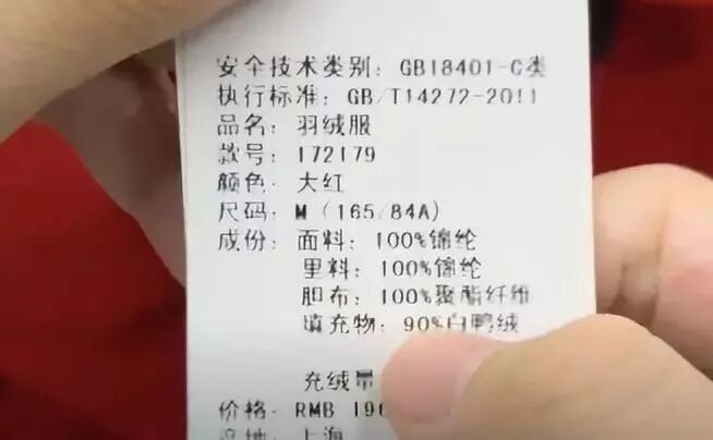 羽绒服的质量合不合标,还得看执行标准是不是符合规定。在标签上,如果能看到GB两个字母,证明是符合标准的。