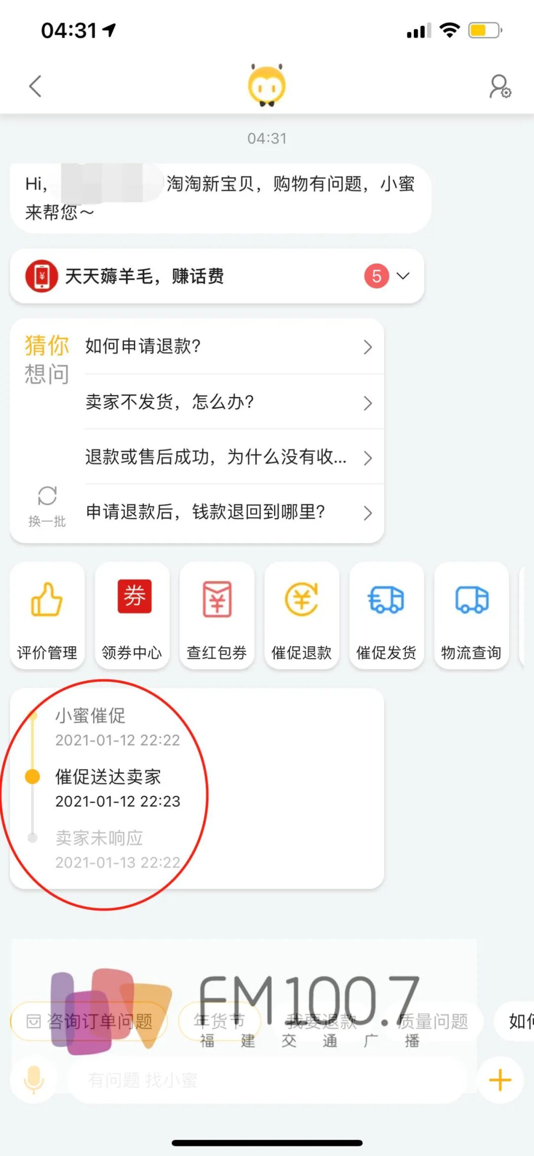 可到了今年1月12号,已经超过卖家约定的15天发货期了,苏女士并没有等来物流消息。我就主动联系卖家,你怎么超期了还不发货,客服只会说帮忙催。苏女士说,卖家从未主动联系自己说明不能发货的原因,也不说明到底什么时候能发,就等于被拖在那里,也不敢去别的店铺买,怕万一买完,这家店又突然发货。