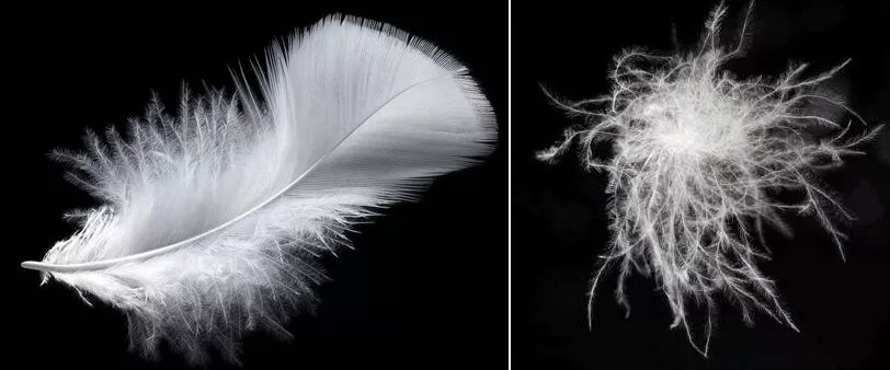 (左图:片状羽毛;右图:羽绒)